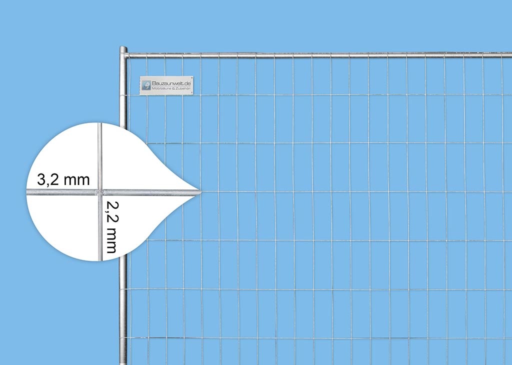 70 m Mobilzaun 13 kg - 3 mm Draht - überstehende Spitzen - Übersteigschutz - verzinkt - wahlweise erhältlich mit Beton-, PE- oder PVC-Bauzaunfuß - Sie wollen Banner oder Planen verwenden? Fragen Sie nach dem passenden Modell.
