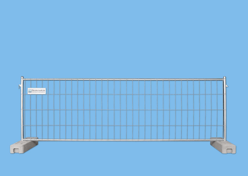 Zaunfeld - verzinkt, mit Plastik-Abdeckkappen um eine Bauzaunabgrenzung für den Privatbereich, Bauarbeiten oder für Personenansammlungen bei einer Veranstaltung professionell errichten zu können.