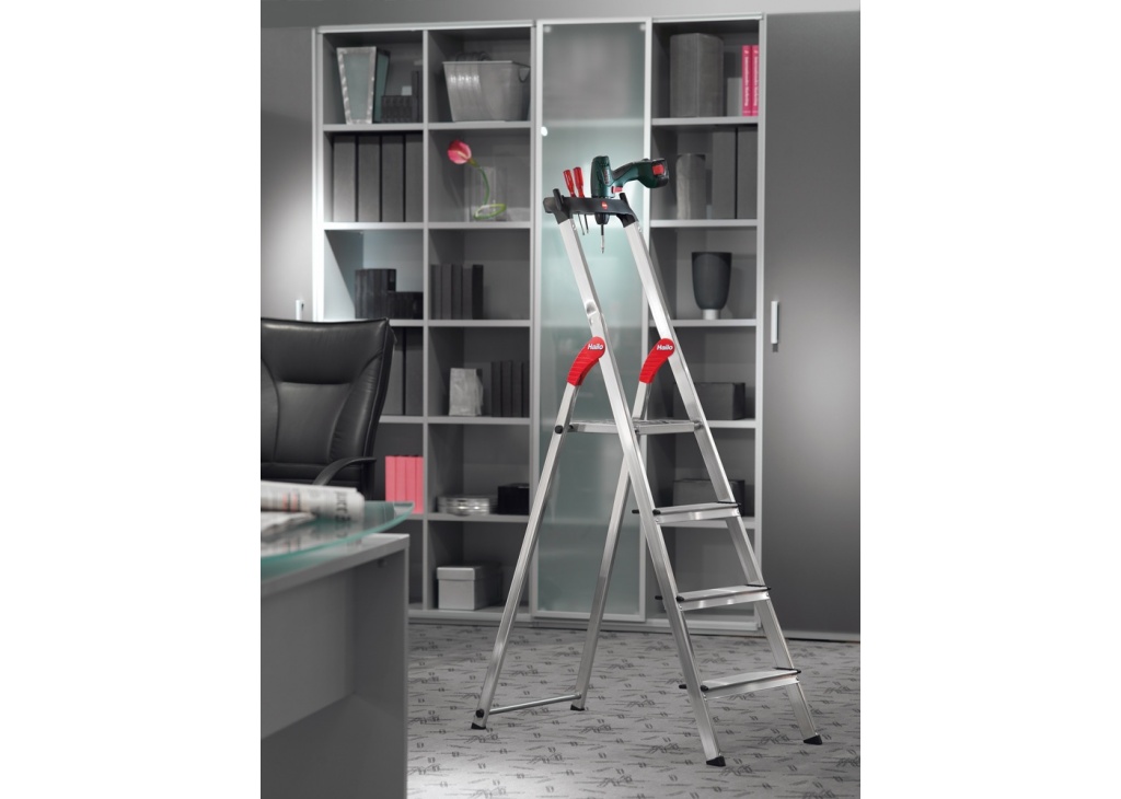 Die praktische Alu-Sicherheits-Haushaltsleiter mit Multifunktions-Schale und Gelenkschutz