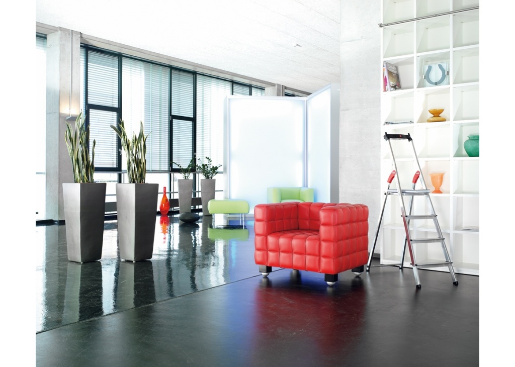 Hailo L60 - Aluminium-Sicherheits-Haushaltsleiter ist Allzeit griffbereit mit Multifunktions-Schale und Gelenkschutz. Oben auf dem Sicherheitsbügel dieser Leiter ist eine Arbeitsschale befestigt. Darin können Sie Werkzeug und Putzmittel griffbereit ablegen. Oder wollen Sie Löcher in die Decke bohren? Mit der integrierten Kabelführung in der Arbeitsschale geht das ganz einfach und ohne Kabelsalat. Und wenn Sie die Decke streichen wollen, hängen Sie den Farbeimer einfach am integrierten Haken auf. Die praktische Alu-Sicherheits-Haushaltsleiter mit Multifunktions-Schale und Gelenkschutz Geeignet für Hailo EasyClix Wechselfüße (optionales Zubehör)